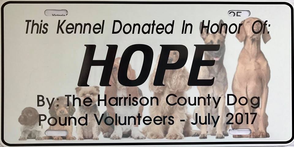 A donation in honor or in memory of a beloved dog is a personal and beautiful way to always remember the love you have for your furry family member. For a minimum donation of $100 to the Harrison County Dog Pound Volunteers, we will dedicate one of the new kennels at the Harrison County Dog Pound with a plaque like this with your name and the name of the dog you choose to honor or memorialize. All donations are always used to pay for the vetting of the dogs at the HCDP. Donations can be made by cash or check made payable to the Harrison County Dog Pound Volunteers and mailed to 82900 Toot Rd. Cadiz, OH 43907 or via Paypal to harcodogpoundvolunteers@gmail.com. Please include a phone number in case we need to reach you. Thank you!